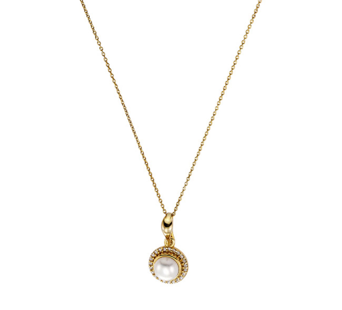 Ένα εντυπωσιακό και διαχρονικό κόσμημα από ασήμι 925, επιχρυσωμένο για να χαρίζει ζεστή χρυσή λάμψη. Το μενταγιόν διαθέτει ένα κεντρικό λευκό μαργαριτάρι, περιτριγυρισμένο από αστραφτερά λευκά ζιρκόν, που δημιουργούν μια κομψή και πολυτελή εμφάνιση.