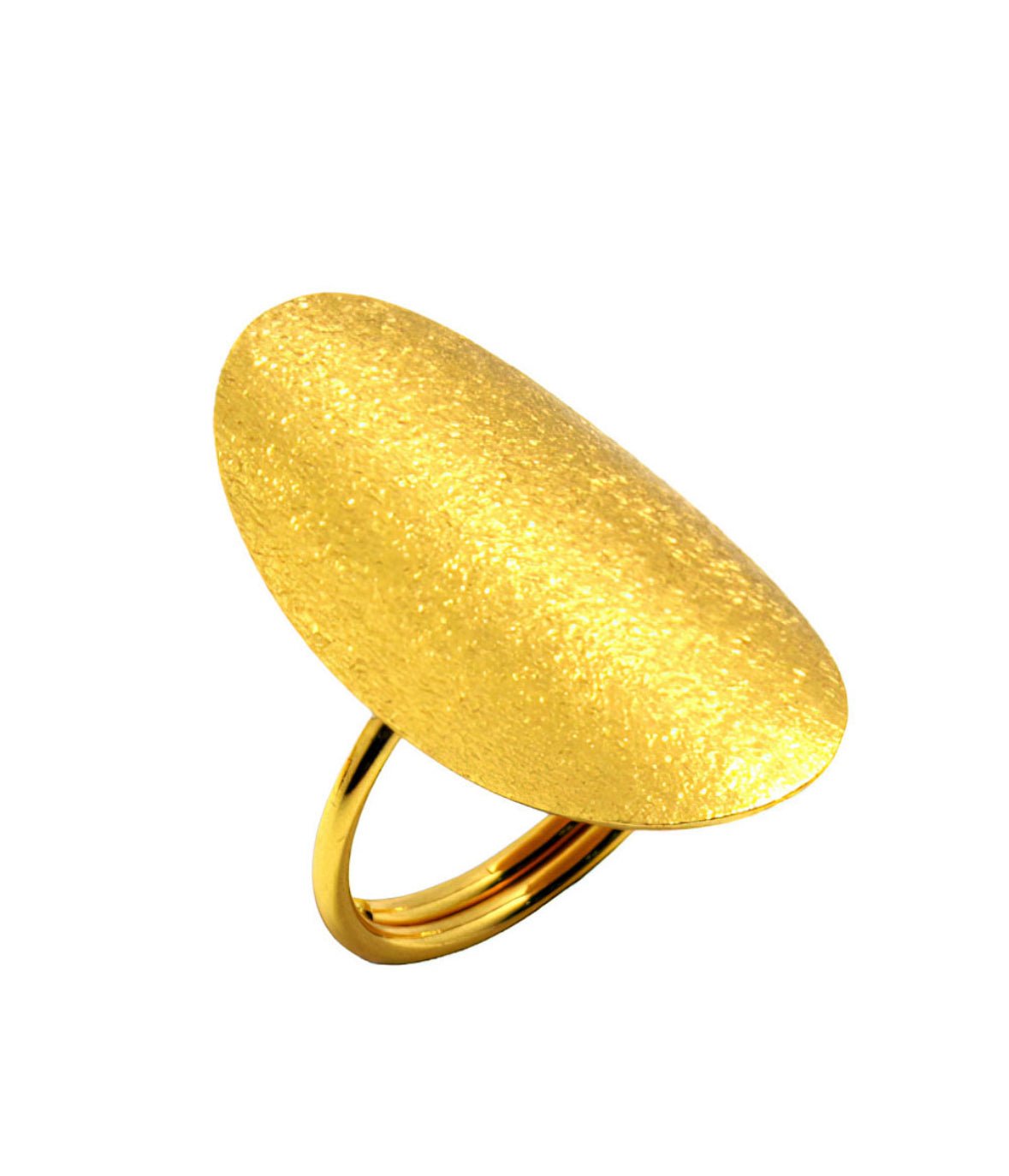 Minimal αλλά απόλυτα εντυπωσιακό, αυτό το δαχτυλίδι από ασήμι 925 επιχρυσωμένο ξεχωρίζει για το μεγάλο οβάλ ματ φινίρισμα που χαρίζει πολυτέλεια και μοντέρνο χαρακτήρα. Το ιδιαίτερο σχέδιο αγκαλιάζει κομψά το δάχτυλο, προσφέροντας μια elegant πινελιά σε κάθε εμφάνιση. Ιδανικό για γυναίκες που αγαπούν τον διακριτικό δυναμισμό.