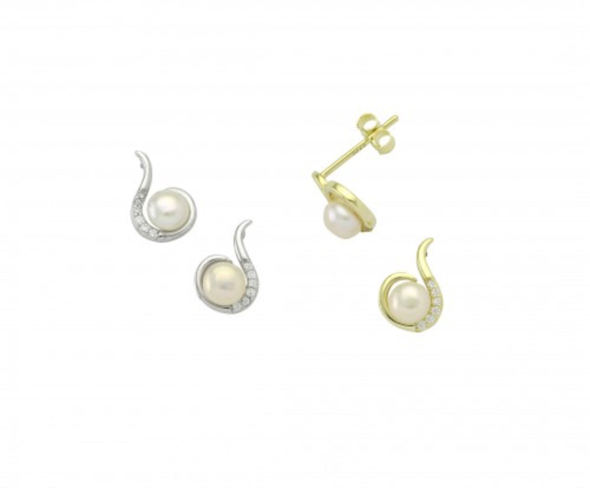 Σκουλαρίκια Μαργαριτάρι με Ζιργκόν – Ασημένια & Επιχρυσωμένα 925