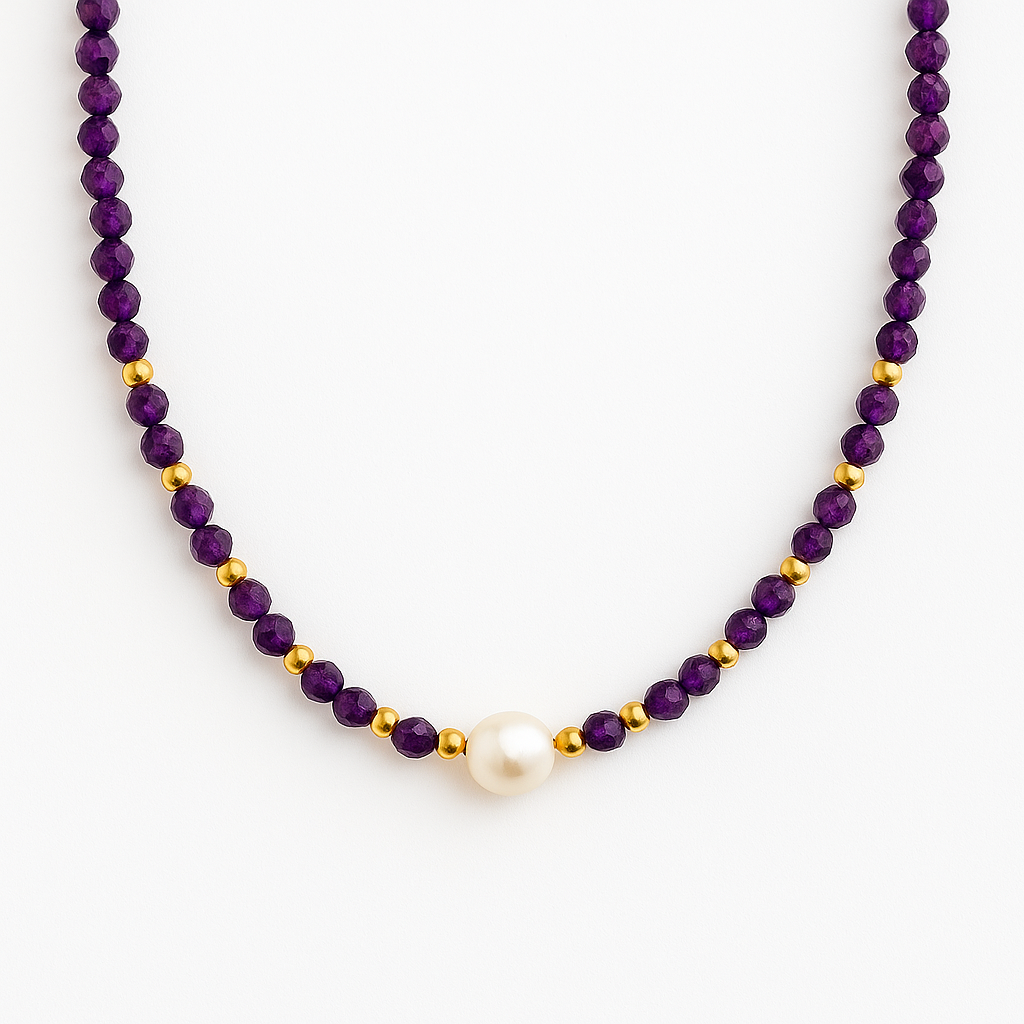 Χειροποίητο Κολιέ με Αμέθυστο & Μαργαριτάρι
